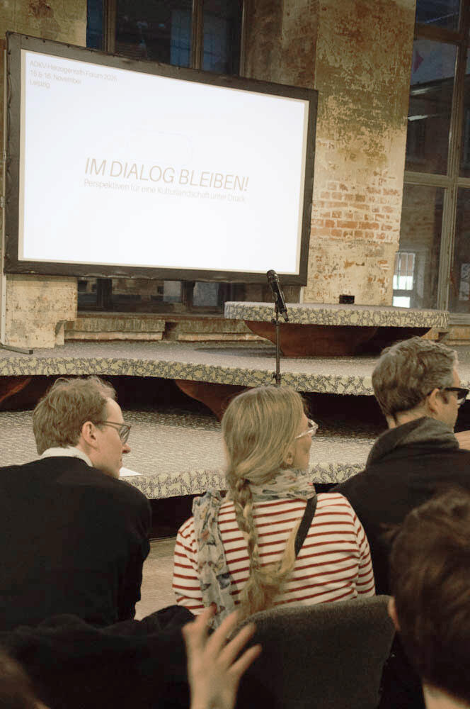 Unter dem Titel "Im Dialog bleiben! Perspektiven für eine Kulturlandschaft unter Druck" kamen Vertreter*innen aus Kunstvereinen, Ausstellungshäusern, Kulturpolitik, Wissenschaft und Zivilgesellschaft zusammen, um Strategien für eine resiliente und solidarische Kulturlandschaft zu entwickeln.