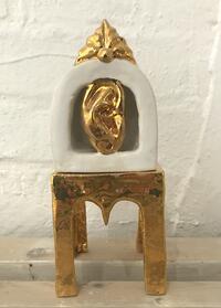 Erschienen: 2021 Entstehungsjahr: Format: 24 cm x 19 cm 15 cm Material: Steinzeug, Porzellan, Glasur, Gold Auflage: Unikat |
