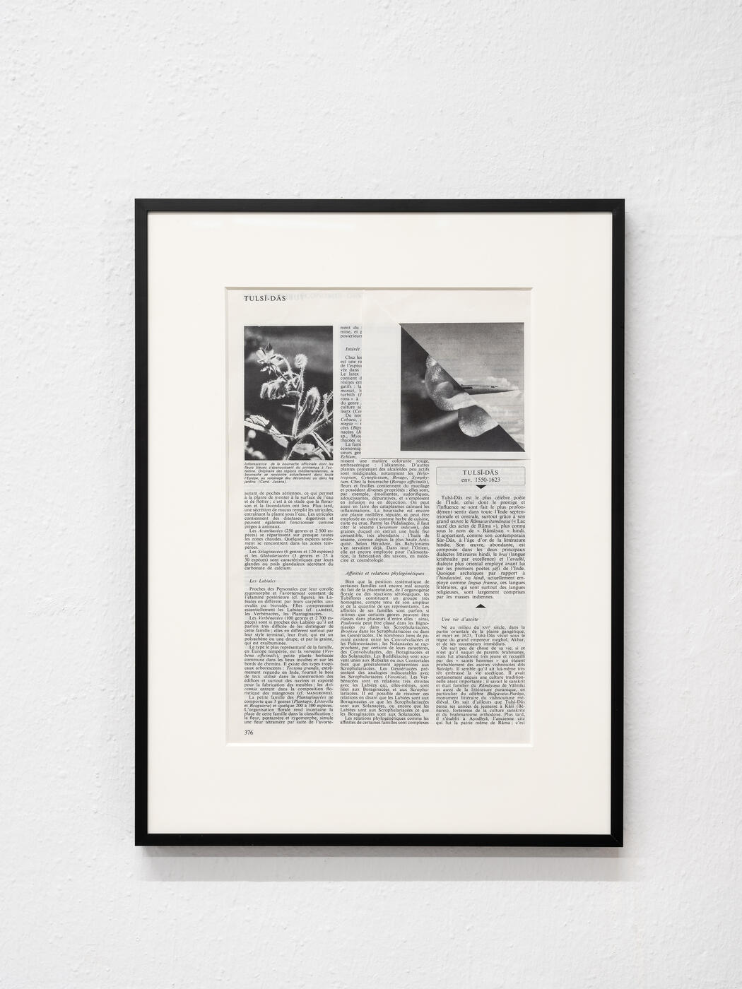 Claudia de la Torres kontinuierliche Erforschung des Faltens als transformativer Geste beginnt mit Paaren originaler Seiten der französischen Encyclopædia Universalis, bei denen umgeknickte Ecken neue Rahmungen und visuelle Dialoge erzeugen. Durch diesen einfachen, jedoch bewussten Akt rekontextualisiert de la Torre die Enzyklopädie – einst ein maßgeblicher Wissensspeicher, heute überholt – und verwandelt sie in rekonfigurierte Artefakte. Jedes Seitenpaar wird zu einem kompakten editorischen Raum, in dem die Geste die Autor:innenschaft ersetzt und der Akt des Publizierens über das Buch hinaus in den Bereich des Skulpturalen erweitert wird.