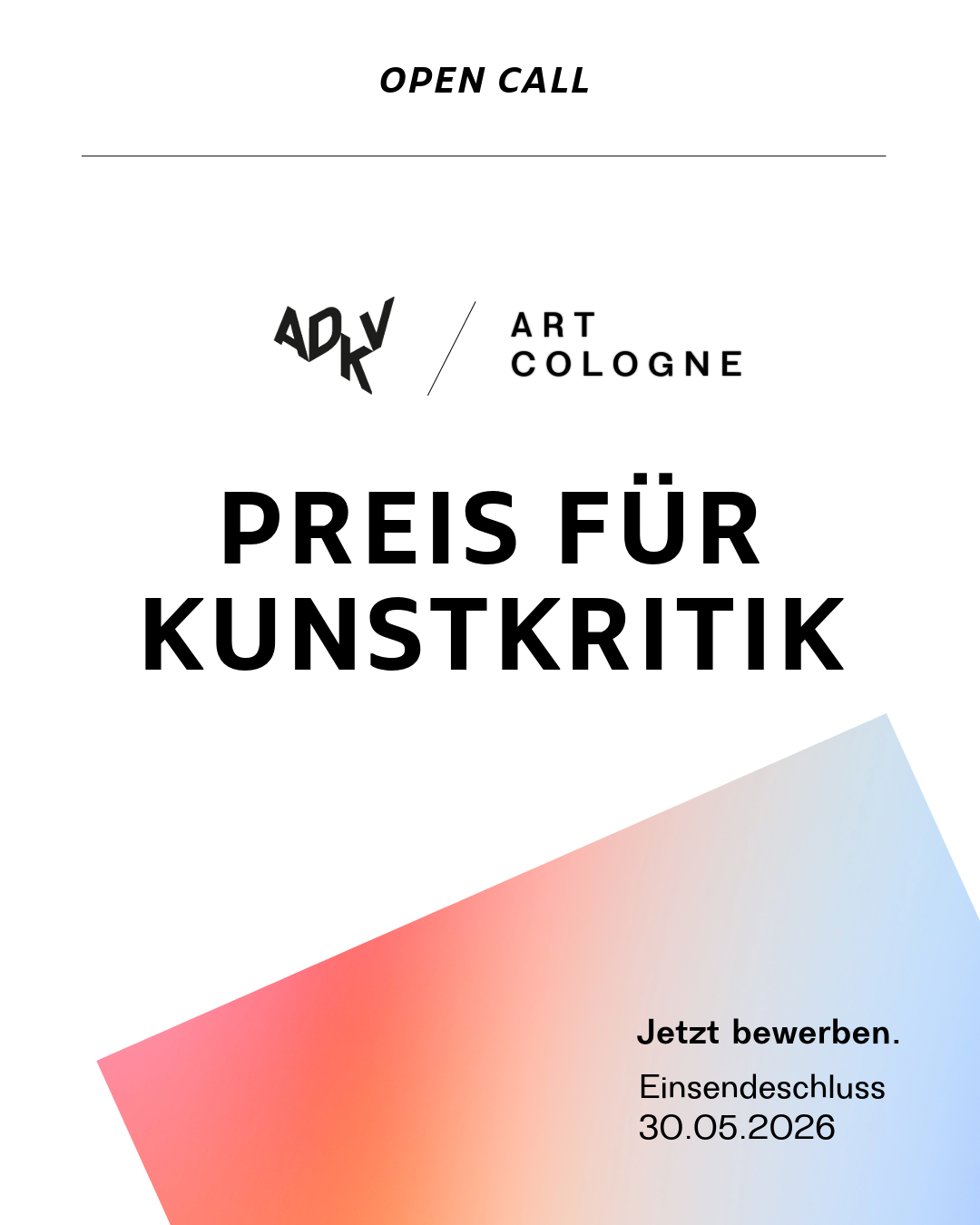 OPEN CALL: ADKV-ART COLOGNE Preis für Kunstkritik 2026