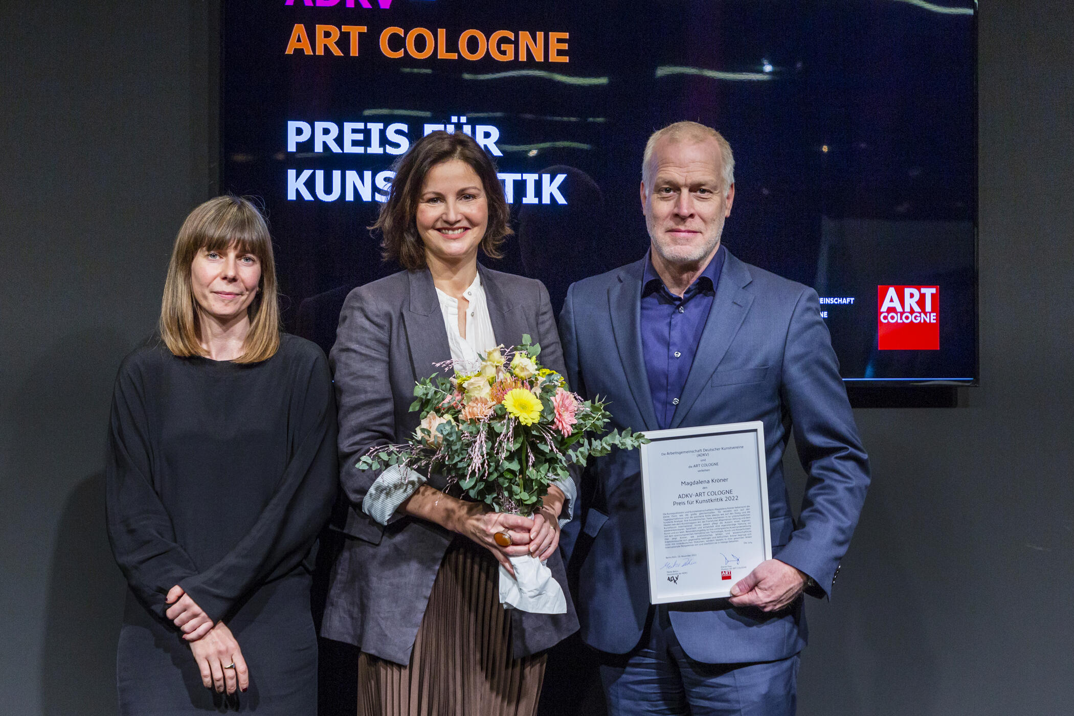 The ADKV-ART COLOGNE Prize for Art Criticism has become a highly regarded award throughout the German-speaking world. The prize has been organised by the ADKV since 1999 and has been awarded in cooperation with ART COLOGNE since 2006.