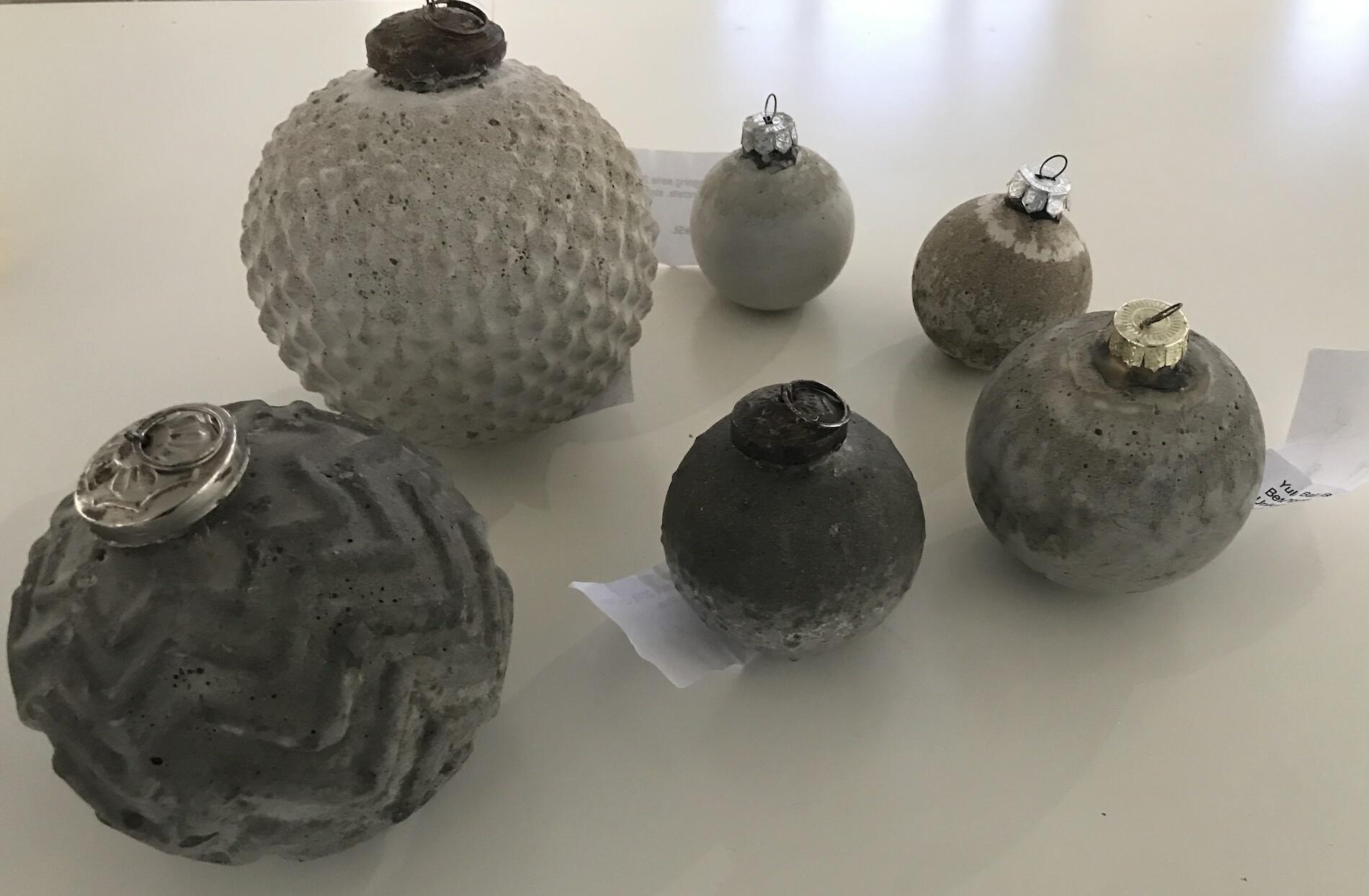 Die Christbaumkugeln von Iris Musolf erinnern an Handgranaten – nicht von ungefähr.