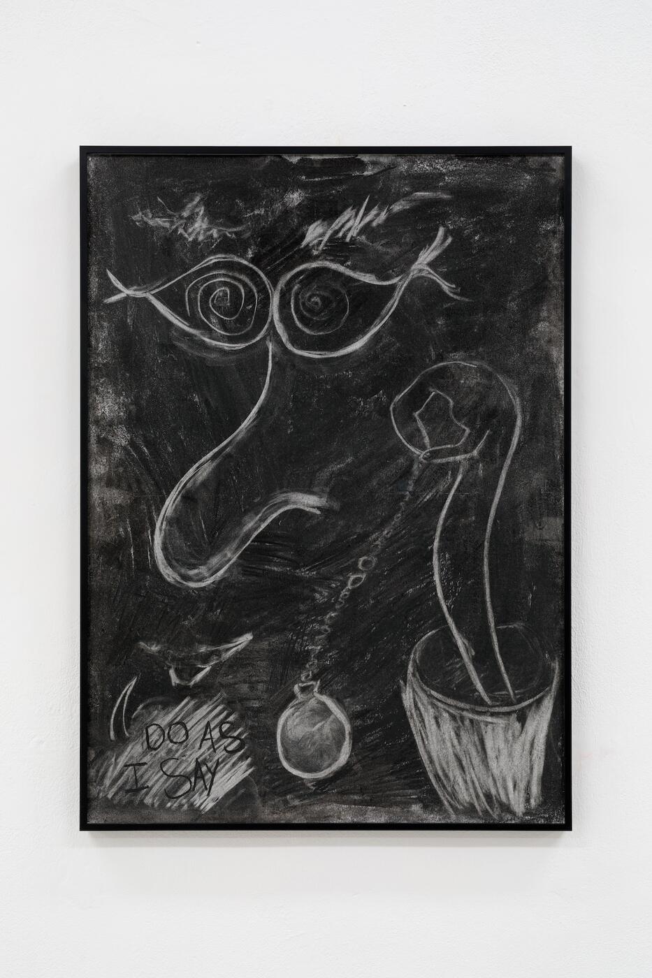 In Andrew Wagners Arbeiten verflechten sich historische und popkulturelle Bildwelten zu fragilen, oft humorvoll gebrochenen Erzählungen über Begehren, Subjektivität und politische Imagination. Die Arbeit „Hypnotist” (2020) basiert auf Fritz Langs Stummfilm „Dr. Mabuse, der Spieler” (1922), in dem das Verbrechergenie Dr. Mabuse durch den Einsatz von Hypnose nach Macht strebt. In der cartoonhaften Darstellung dieser Figur verdichtet sich Wagners Interesse exemplarisch: Seine Zeichnungen zeigen Gestalten, die sich durch Szenen bewegen, die zugleich überzeichnet und real erscheinen. Die Ästhetik des Cartoons dient ihm dabei als Mittel, emotionale und politische Spannungen sichtbar zu machen, die zwischen individueller Erfahrung und kollektiver Sehnsucht entstehen.